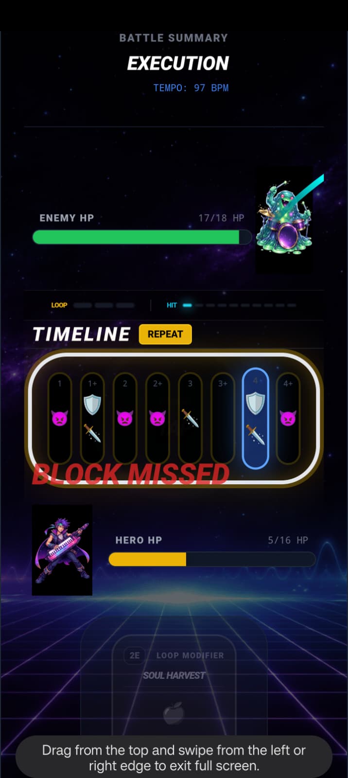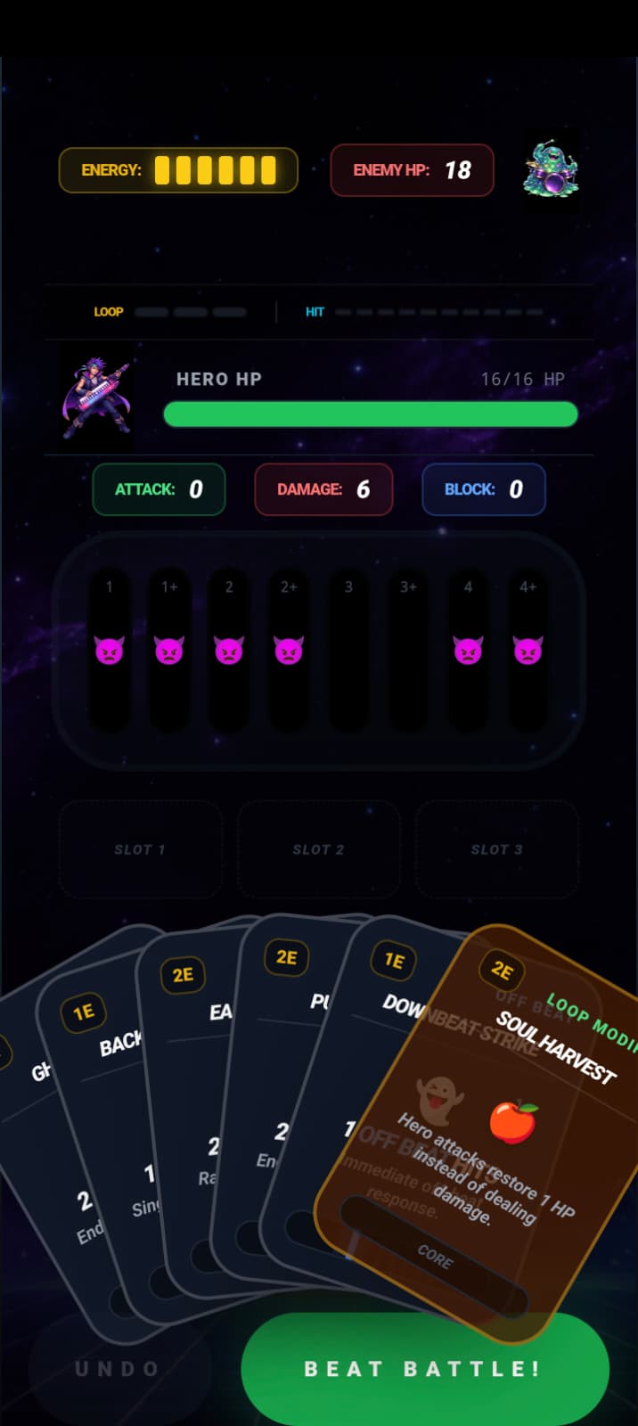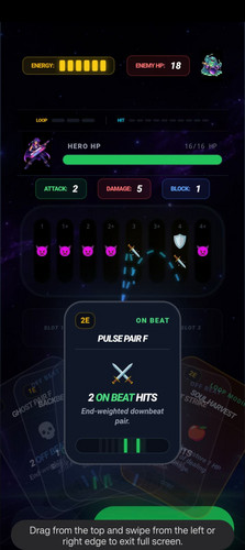 Gameplay prototype for my Deckbuilder Rhythm Roguelite. Strategise your attacks and blocks like a deck builder and play them back to win, how you excute your rhytmn is just as important as your strategy.